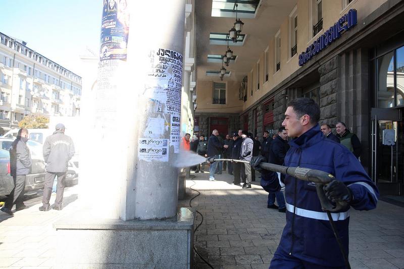 შენობის ფასადებზე უკანონოდ გაკრული პლაკატების გაწმენდა-დასუფთავება დაიწყო