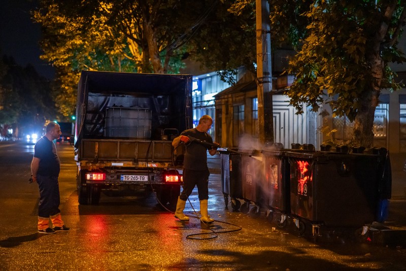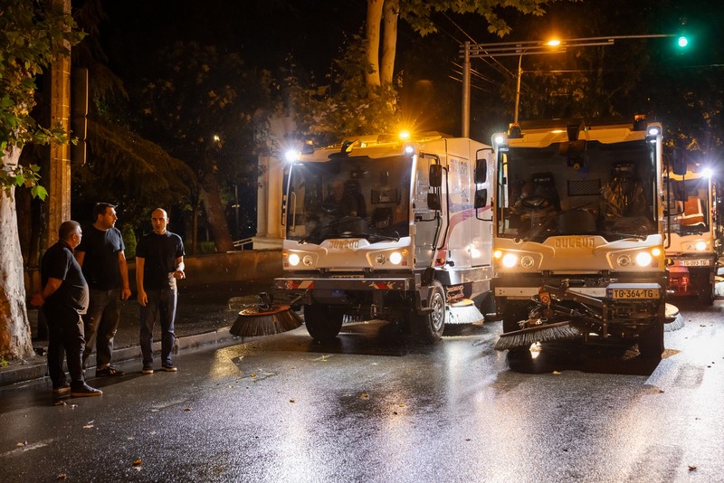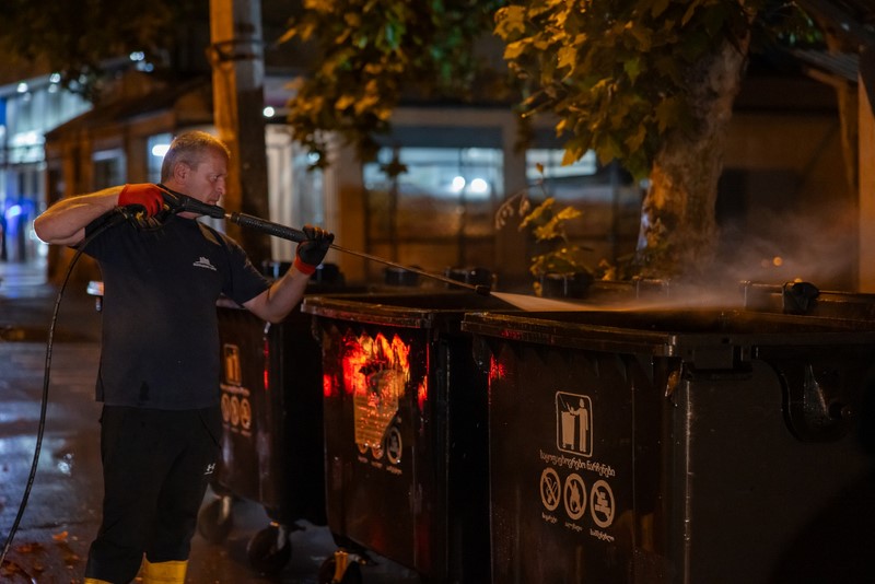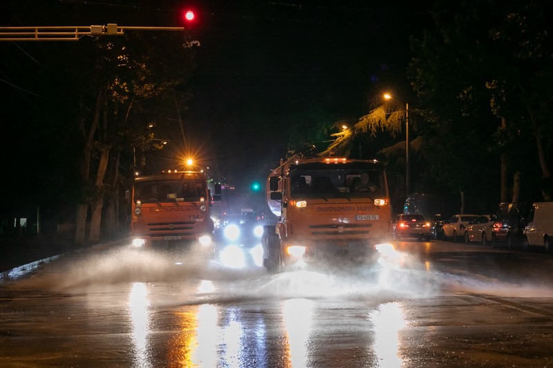 ცოტნე დადიანის ქუჩაზე მიმდინარე მორეცხვის სამუშაოებში ჩართული იყო „თბილსერვის ჯგუფის“ 30 თანამშრომელი და 18 ერთეული სპეცმანქანა.