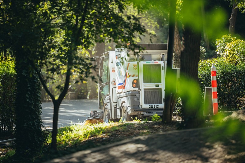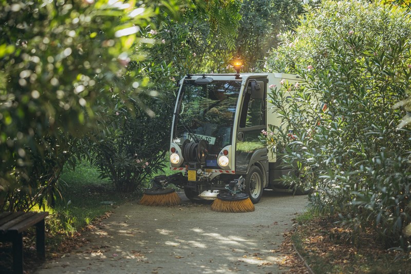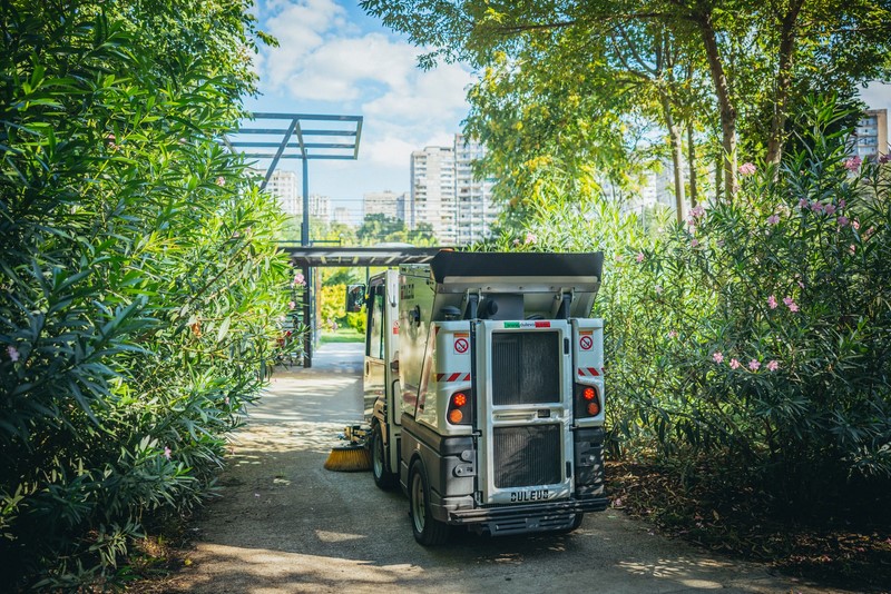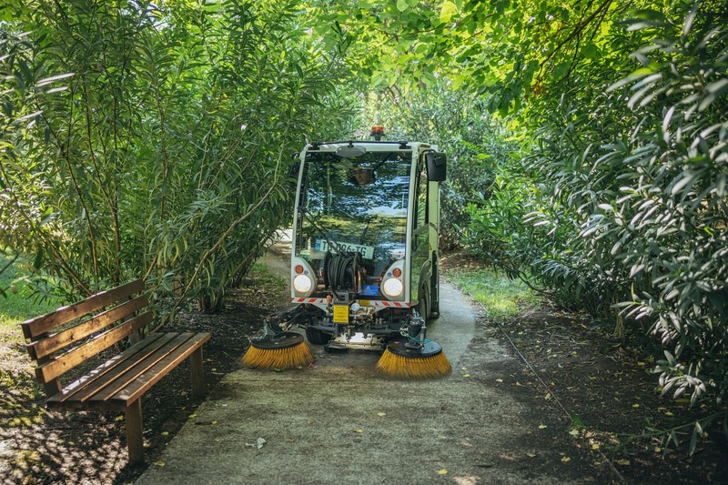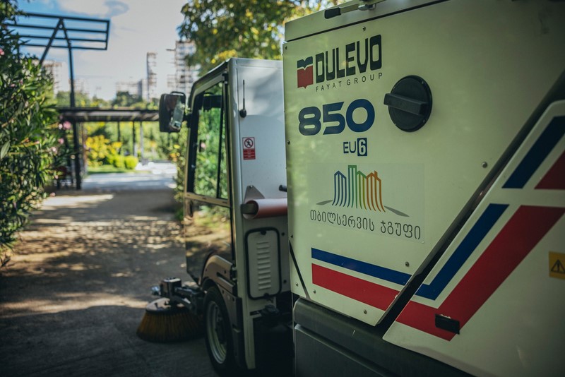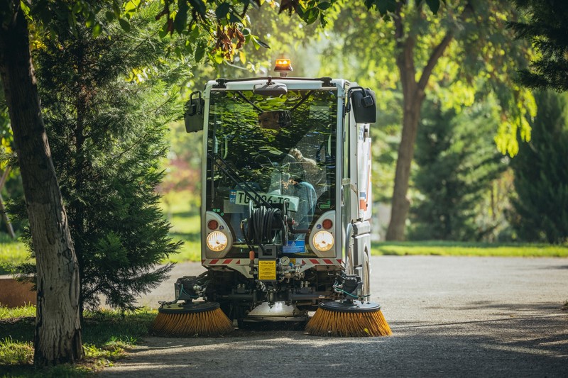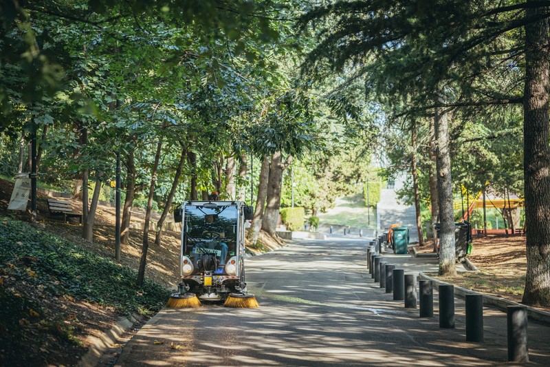 მზიურის პარკში ბილიკები და სავალი ნაწილი მექანიკური დამგველით, ე.წ. სვიპერით სუფთავდება.