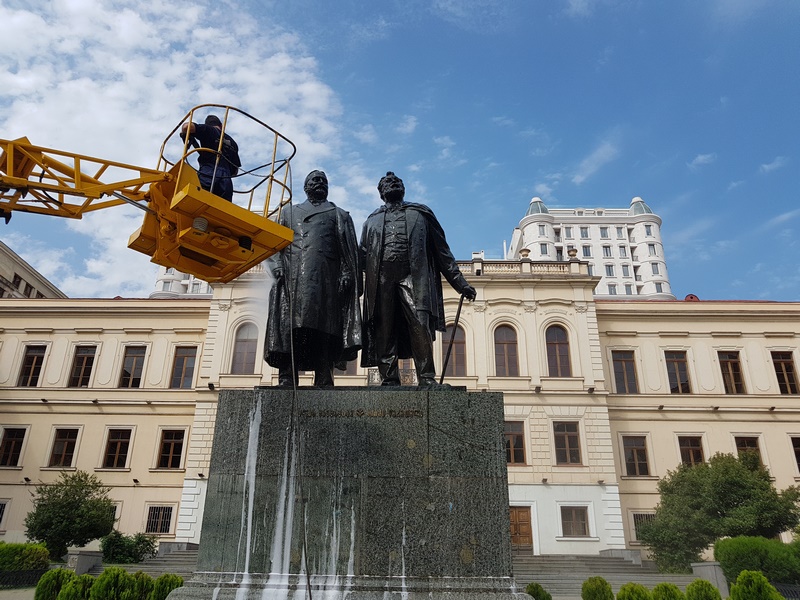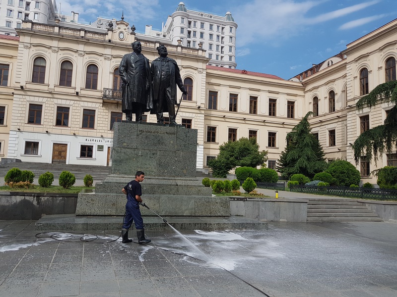 შპს „თბილსერვის ჯგუფი“ დედაქალაქის მასშტაბით არსებული ძეგლების მორეცხვით სამუშაოებს განაგრძობს. ამ ეტაპზე რუსთაველის გამზირზე მდებარე „ილიას და აკაკის ძეგლი“ სპეციალური ტექნიკის დახმარებით, ე.წ „კერხერის“ აპარატით მოირეცხა. აღნიშნული სამუშაოები თბილისის სხვადასხვა რაიონში ეტაპობრივად განხორციელდება. #თბილისი2017