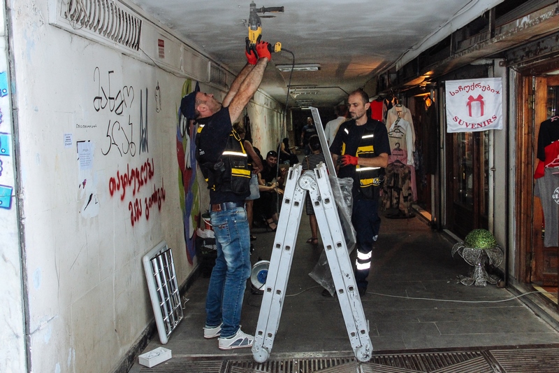 მიწისქვეშა გადასასვლელებში "ლედ" სანათების მონტაჟი მიმდინარეობს