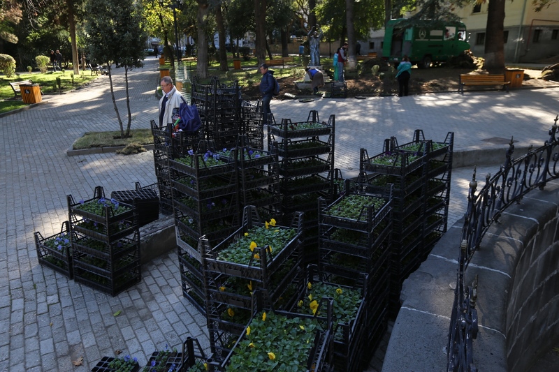 ბაღებსა და პარკებში საშემოდგომო გამწვანებითი სამუშაოები გრძელდება