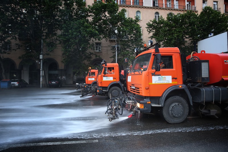 თბილისში ქუჩების მორეცხვა ყოველდღიურ რეჟიმში მიმდინარეობს