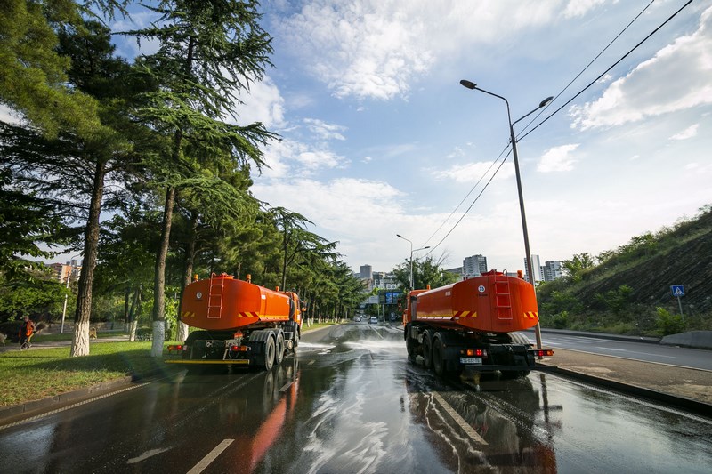 გზის მორეცხვის სამუშაოები ოქტომბრის ბოლომდე გაგრძელდება და შემდეგ ქუჩებსა და გამზირებზე შესრულდება: ალექსანდრე პუშკინის ქუჩა; ნიკოლოზ ბარათაშვილის ქუჩა; ვახტანგ გორგასლის ქუჩა; მიხეილ ჯავახიშვილის ქუჩა (ყოფილი ელბაქიძის ქუჩა); მეტეხის ხიდი; ბარათაშვილის ხიდი; გალაქტიონის ხიდი; გია გულუას ქუჩა; შოთა რუსთაველის გამზირი; მერაბ კოსტავას ქუჩა; პეტრე მელიქიშვილის ქუჩა; თავისუფლების მოედანი; კოტე აფხაზის ქუჩა; დავით აღმაშენებლის გამზირი; კოტე მარჯანიშვილის ქუჩა; ზაარბრიუკენის მოედანი; ცოტნე დადიანის ქუჩა; ქეთევან წამებულის გამზირი; ვარკეთილის დასახლება - ცენტრალური ქუჩები; ვაზისუბნის დასახლება - ცენტრალური ქუჩები; ლეხ კაჩინსკის ქუჩა; ავლაბრის მოედანი; ნიკოლოზ ბარათაშვილის აღმართი; ევროპის მოედანი; აკაკი წერეთლის გამზირი; გიორგი ცაბაძის ქუჩა; თამარ მეფის გამზირი;თევდორე მღვდლის ქუჩა; აბასთუმნის ქუჩა; მიხეილ წინამძღვრიშვილის ქუჩა; გრიგოლ რობაქიძის გამზირი; ფარნავაზ მეფის გამზირი; მირიან მეფის ქუჩა; დავით გურამიშვილის გამზირი; დავით სარაჯიშვილის ქუჩა; თორნიკე ერისთავის ქუჩა; ნოდარ დუმბაძის გამზირი; ანგია ბოჭორიშვილის ქუჩა; იოსებ ნონეშვილის ქუჩა; ალეკო გობრონიძის ქუჩა; ილია ჭავჭავაძის გამზირი; ზაქარია ფალიაშვილის ქუჩა; ირაკლი აბაშიძის ქუჩა; მიხეილ თამარაშვილის ქუჩა; ვაჟა-ფშაველას გამზირი; ალექსანდრე ყაზბეგის გამზირი; შალვა ნუცუბიძის ქუჩა; ჟიული შარტავას ქუჩა; პეკინის ქუჩა; იური გაგარინის ქუჩა; გმირთა მოედანი; გმირთა მოედანი-მიხეილ თამარაშვილის ქუჩის დამაკავშირებელი ახალი გზა და პანდუსები; მარშალ გელოვანის გამზირი.