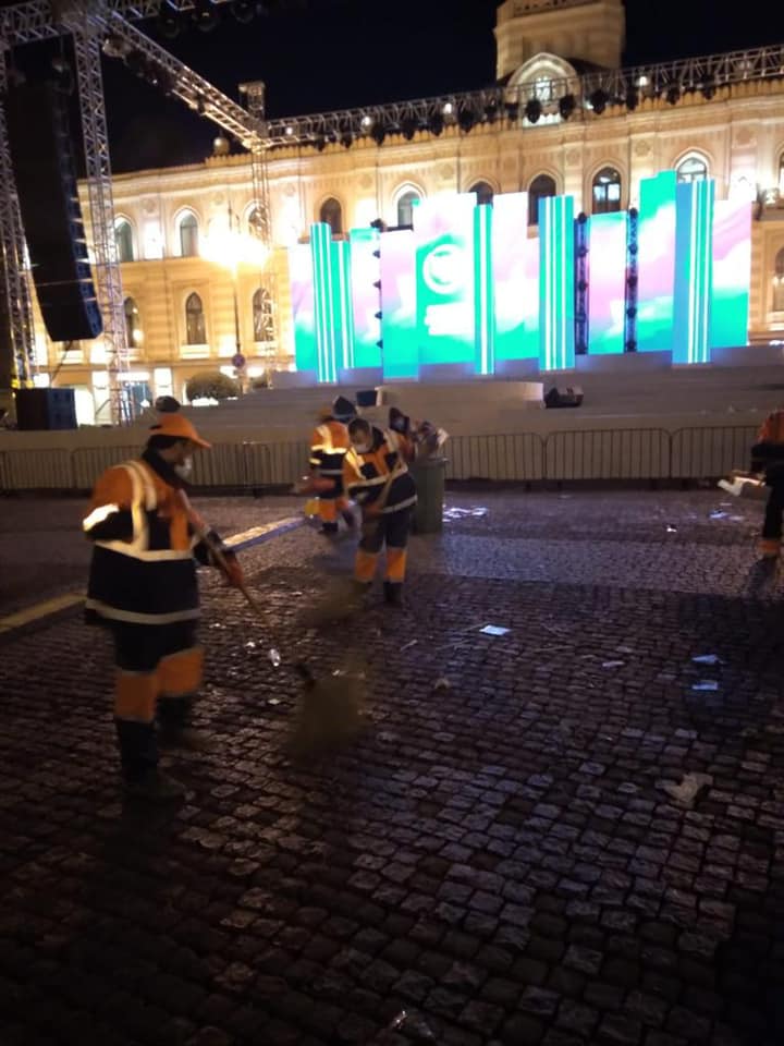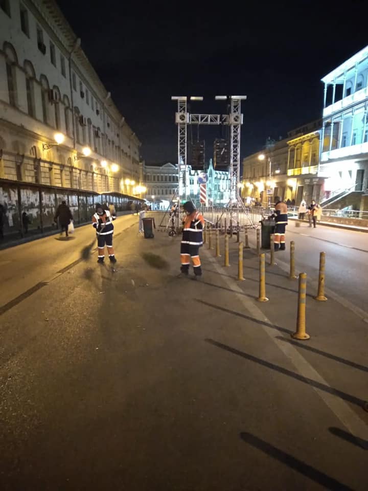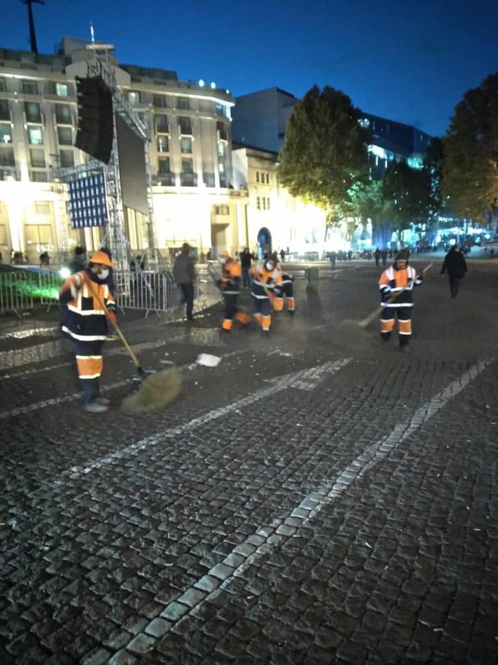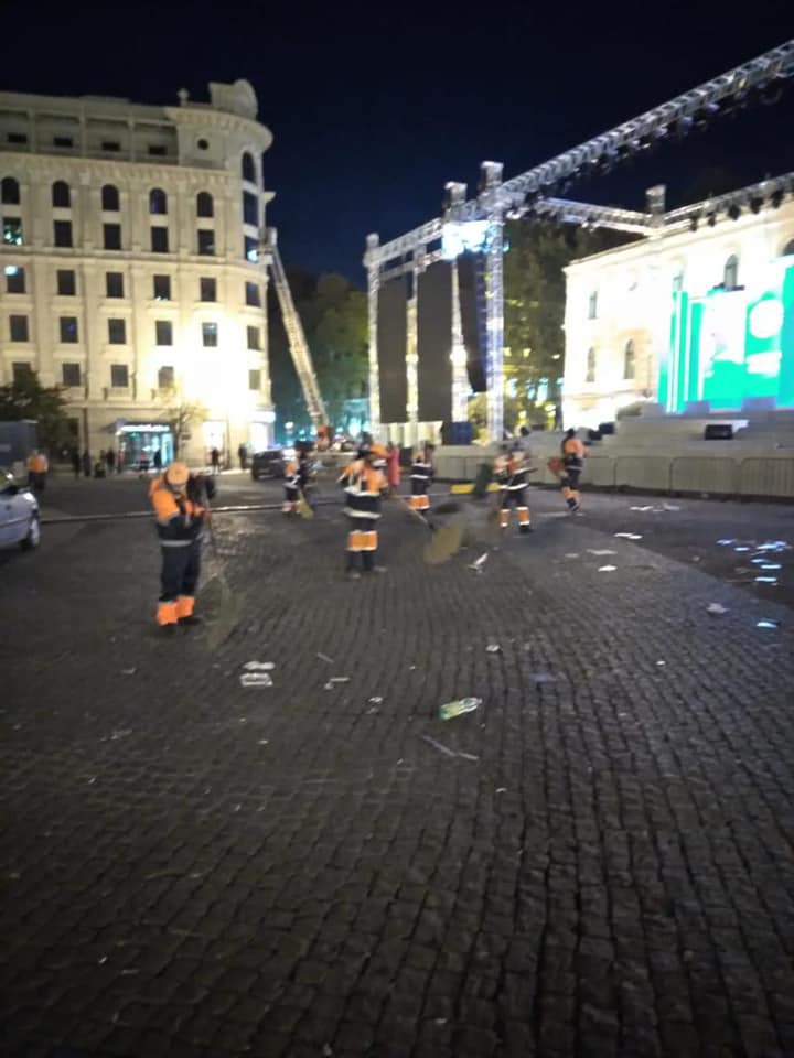 შპს ,,თბილსერვის ჯგუფის" თანამშრომლებმა, რუსთაველის მეტროდან თავისუფლების მოედნამდე, აქციის შედეგად დაბინძურებული ტერიტორია დაასუფთავეს.