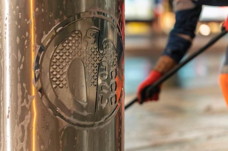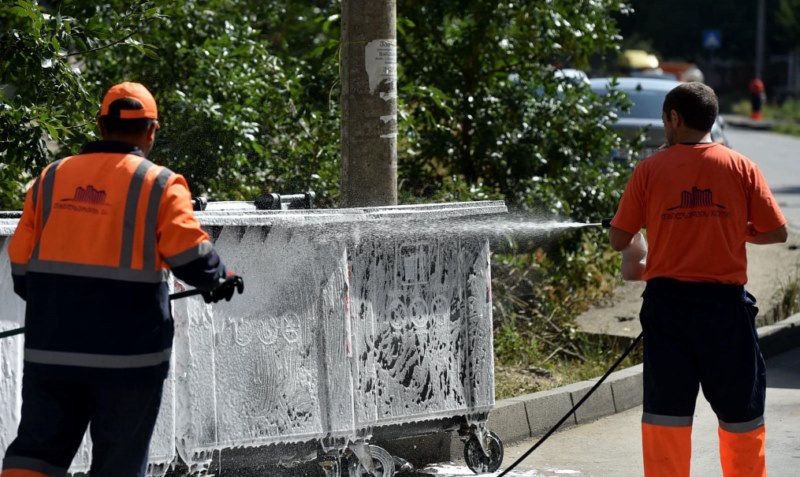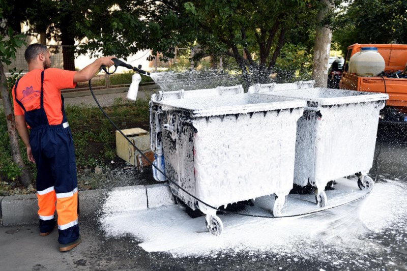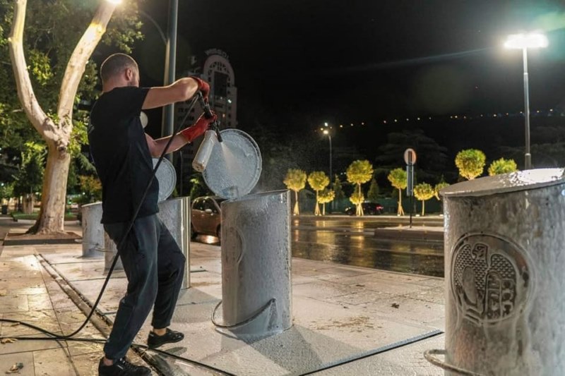 ჭავჭავაძის გამზირზე საზოგადოებრივი ტრანსპორტის გაჩერებები, სეპარირებული ურნები და მიწისქვეშა ნაგავშემკრები კონტეინერები გაირეცხა.