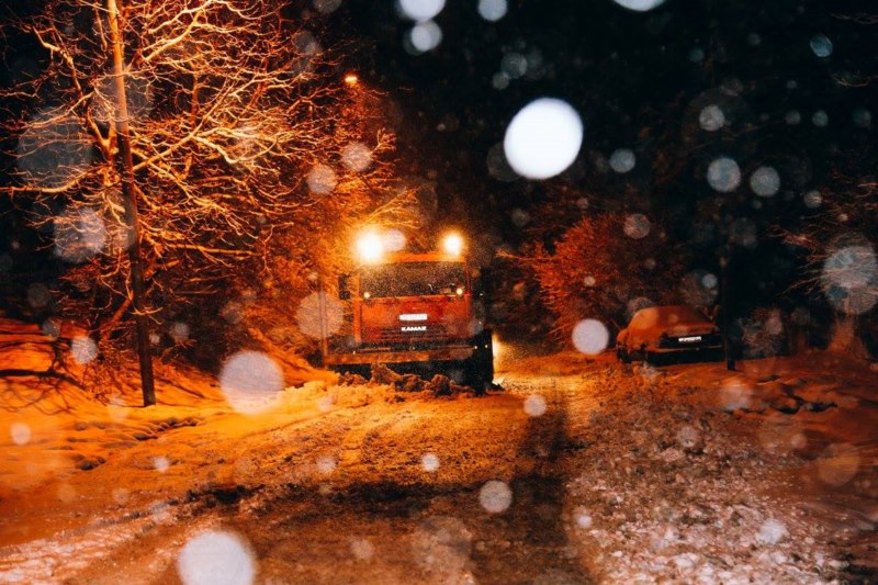 გზის გაწმენდითი სამუშაოები მთელი ღამის განმავლობაში მიმდინარეობდა