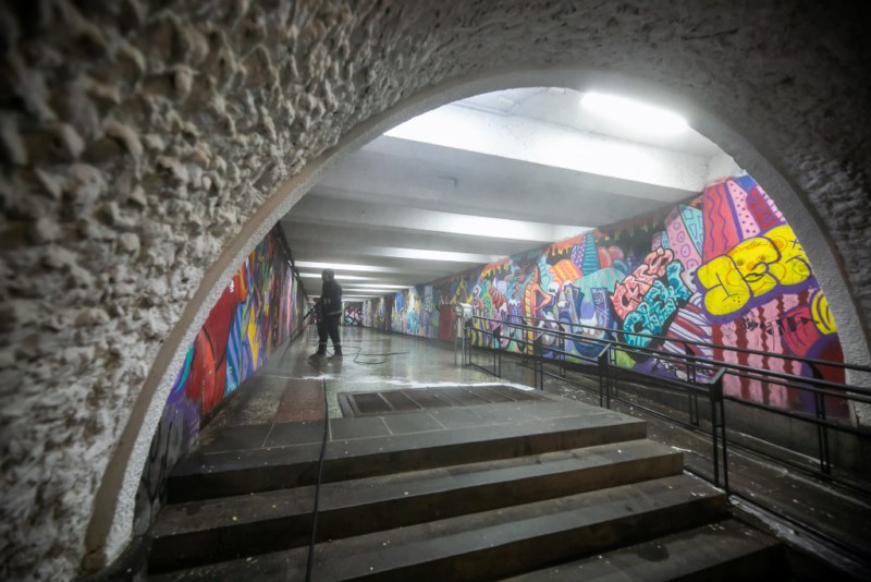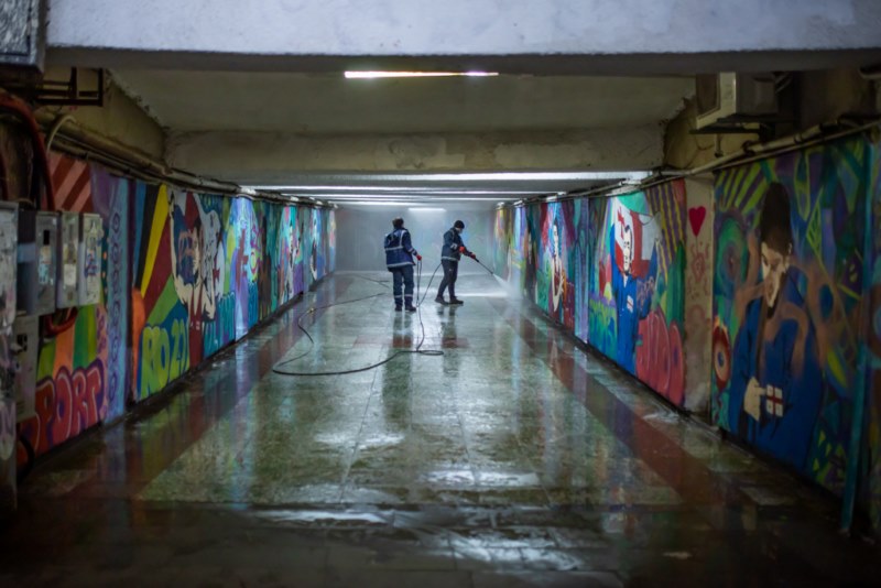 რუსთაველისა და ჭავჭავაძის გამზირზე არსებული მიწისქვეშა გადასასვლელები მოირეცხა. სამუშაოები "თბილსერვის ჯგუფის" დასუფთავების დეპარტამენტის თანამშრომლებმა შეასრულეს.