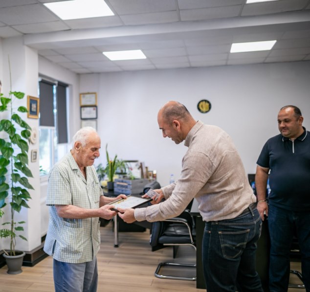 მას დღეს „თბილსერვის ჯგუფის“ დირექტორი დავით ფაჩულია შეხვდა, აღსანიშნავი თარიღი მიულოცა და მადლობის სიგელი გადასცა.