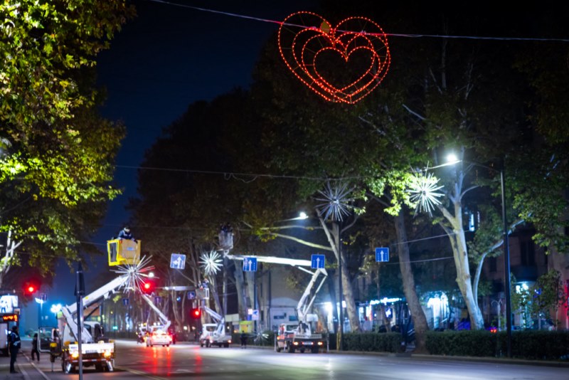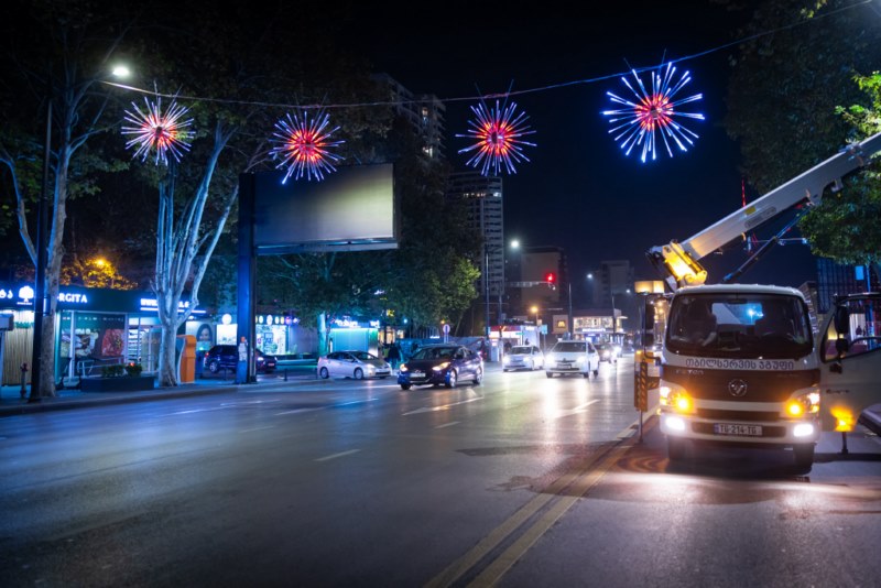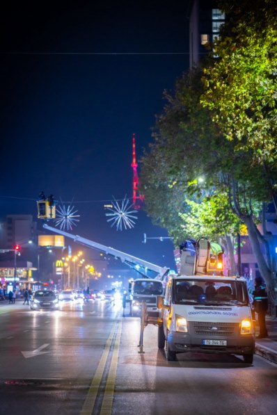 დედაქალაქში საახალწლო განათებების მონტაჟი გრძელდება