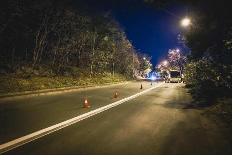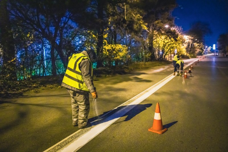 საგზაო მონიშვნების დახაზვა ვახტანგ გორგასლის ქუჩაზე