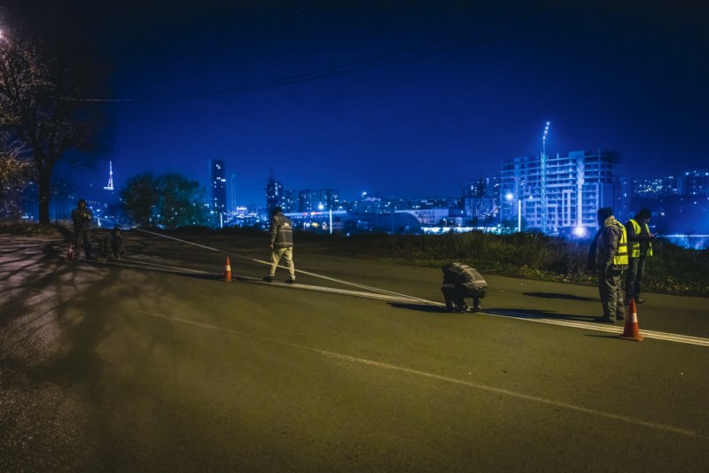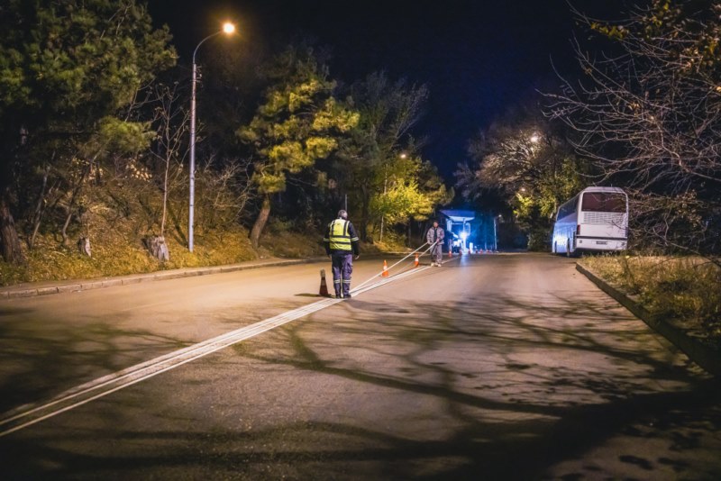 გზის დახაზვის სამუშაოებს „თბილსერვის ჯგუფის“ თანამშრომლები მერიის ტრანსპორტისა და ურბანული განვითარების სააგენტოს დავალებით ასრულებენ.