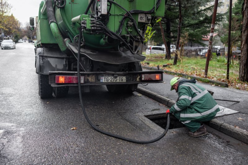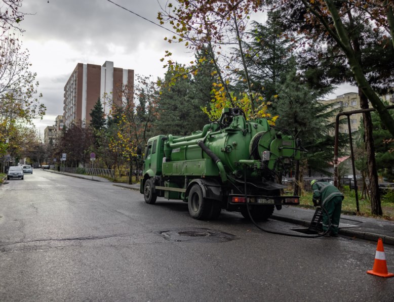 მათ შორის, სპეცტექნიკით გაირეცხა ნანეიშვილის ქუჩაზე, N100 საბავშვო ბაღის მიმდებარედ არსებული ქსელი.