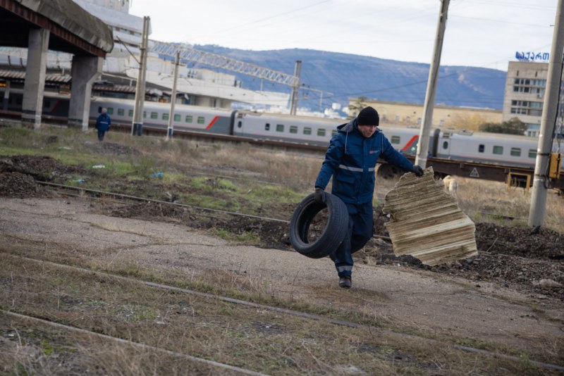 დასუფთავების აქცია რკინიგზის სადგურზე