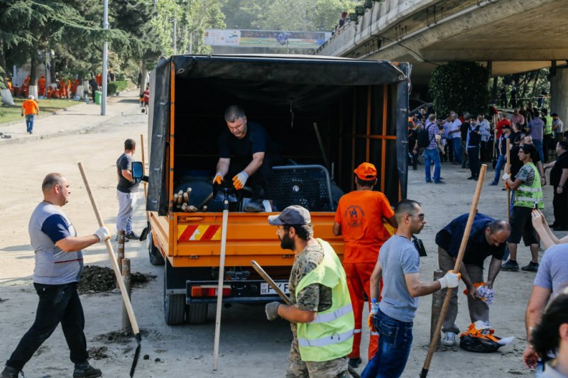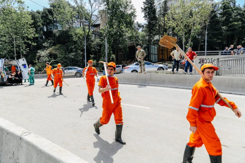 შპს " თბილსერვის ჯგუფის" თანამშრომლები სტიქიის ყველა ცხელ წერტილში - სვანიძის ქუჩის, ზოოპარკის და მზიურის პარკის ტერიტორიებზე საგანგებო რეჟიმში გაწმენდითი სამუშაოების დასრულებამდე მუშაობდნენ.