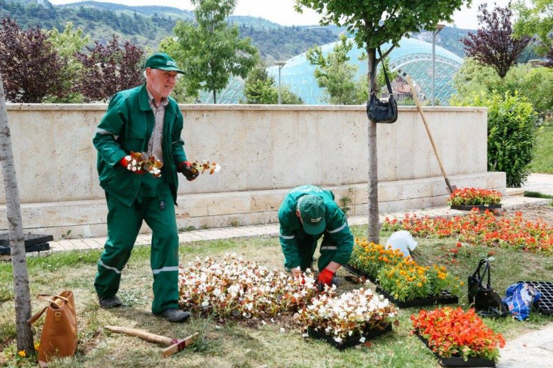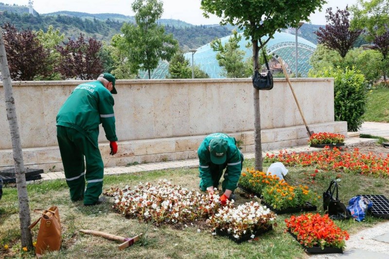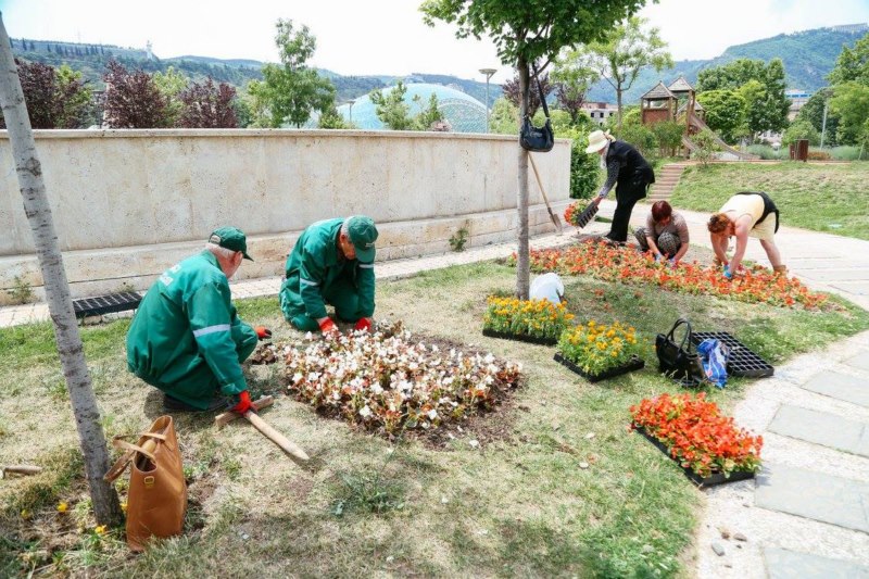 "თბილსერვის ჯგუფმა" რიყის პარკში საყვავილე თარგები მოაწყო