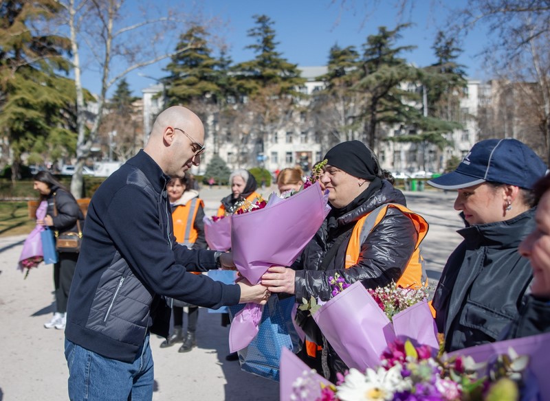 შეხვედრაზე „თბილსერვის ჯგუფის“ დირექტორმა, დასუფთავების დეპარტამენტის ხელმძღვანელებთან ერთად, ქალებს სიმბოლური საჩუქრები გადასცა.