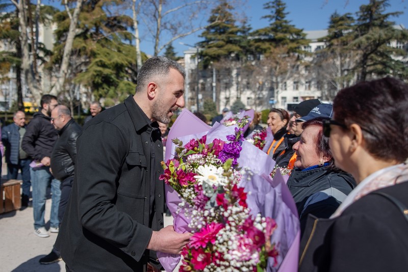 „გილოცავთ 8 მარტს, ამ შესანიშნავ დღეს! განსაკუთრებით მინდა მივულოცო „თბილსერვის ჯგუფის“ თანამშრომელ ქალებს, რომლებიც დიდ ძალისხმევას დებენ ყოველდღიურ საქმიანობაში და მუდმივად ზრუნავენ დედაქალაქზე. დღეს შევხვდით დასუფთავების დეპარტამენტის თანამშრომელ ქალებს, რომლებიც გამორჩეულები არიან შრომითა და მონდომებით თავიანთ რაიონულ სამსახურებში“, - აღნიშნა გიორგი პაპავამ.